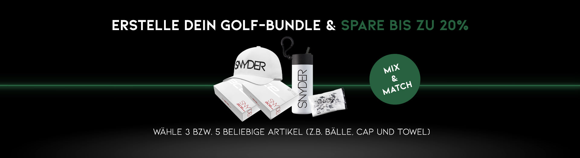 Ab 3 bzw. 5 beliebig wählbaren Artikeln in deinem Warenkorb (z.B. Bälle, Cap und Towel) erhältst du für jeden Artikel den jeweilig günstigsten Preis.